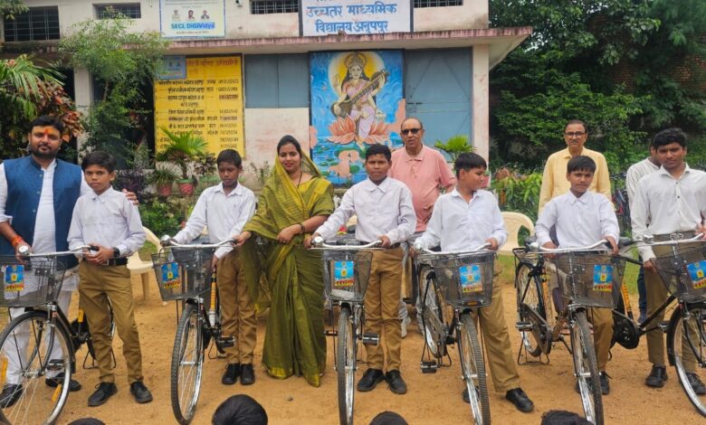 शासकीय बालक उच्चतर माध्यमिक विद्यालय अनूपपुर में विद्यार्थियों को किया गया साइकिल वितरण
