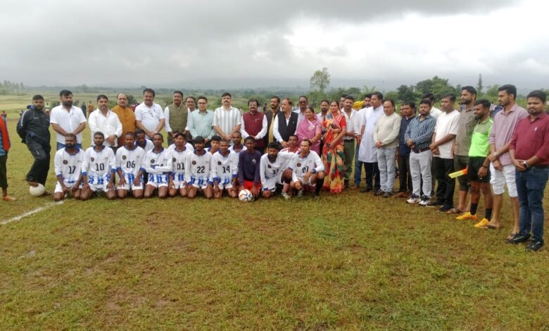 अनूपपुर/अनूपपुर जिले के पुष्पराजगढ़ विधानसभा क्षेत्र के ग्राम पंचायत अमगवां में नर्मदा अंचल वीर युवा संगठन एवं हीरा सिंह श्याम मित्र मंडली द्वारा आयोजित संभाग के सबसे बड़े फुटबॉल टूर्नामेंट का शुभारंभ आज खेल मैदान ग्राम पंचायत अमगवां में किया गया , बता दें कि यह फुटबॉल टूर्नामेंट कई वर्षों से चला आया है।